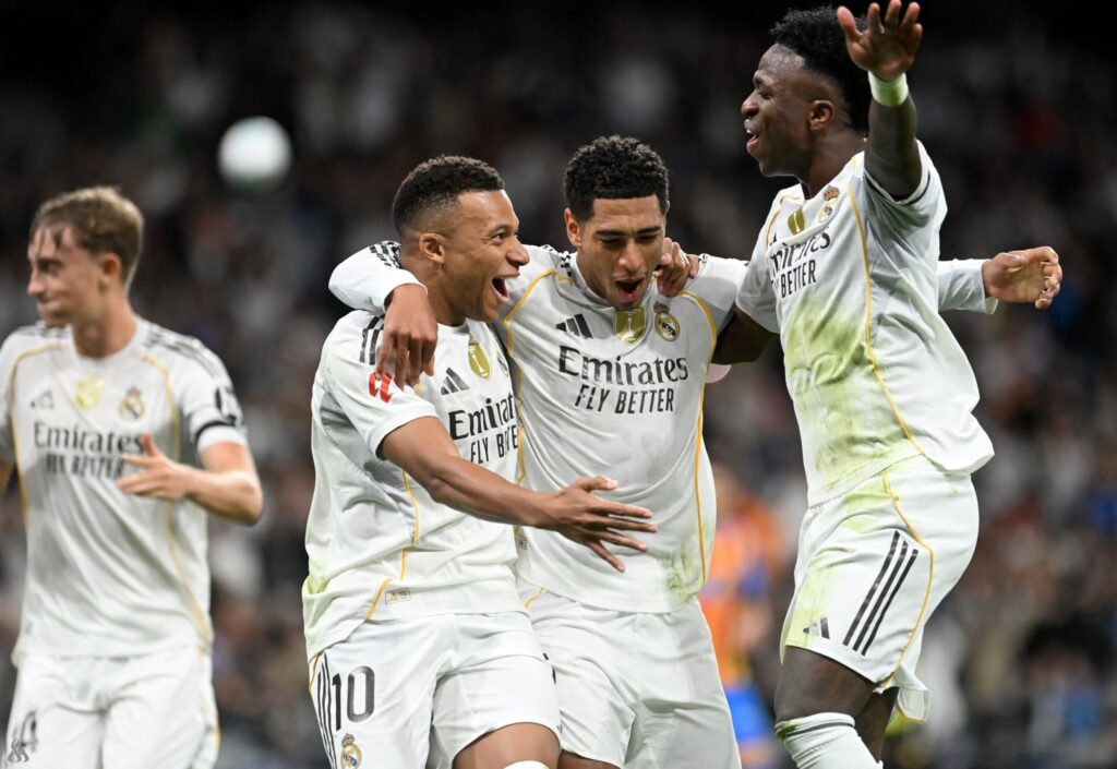 وسجل لريال مدريد كل من كيليان مبابي وجود بلينجهام وألفارو كاريراس في الدقائق (19، 31، 44، 82).